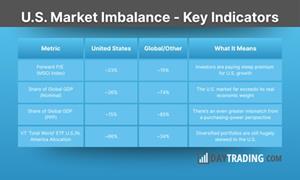 Analysis from DayTrading.com reviewed several metrics highlighting a familiar pattern: global investors maintain a significant weighting in U.S. assets compared with the scale of the underlying economy.